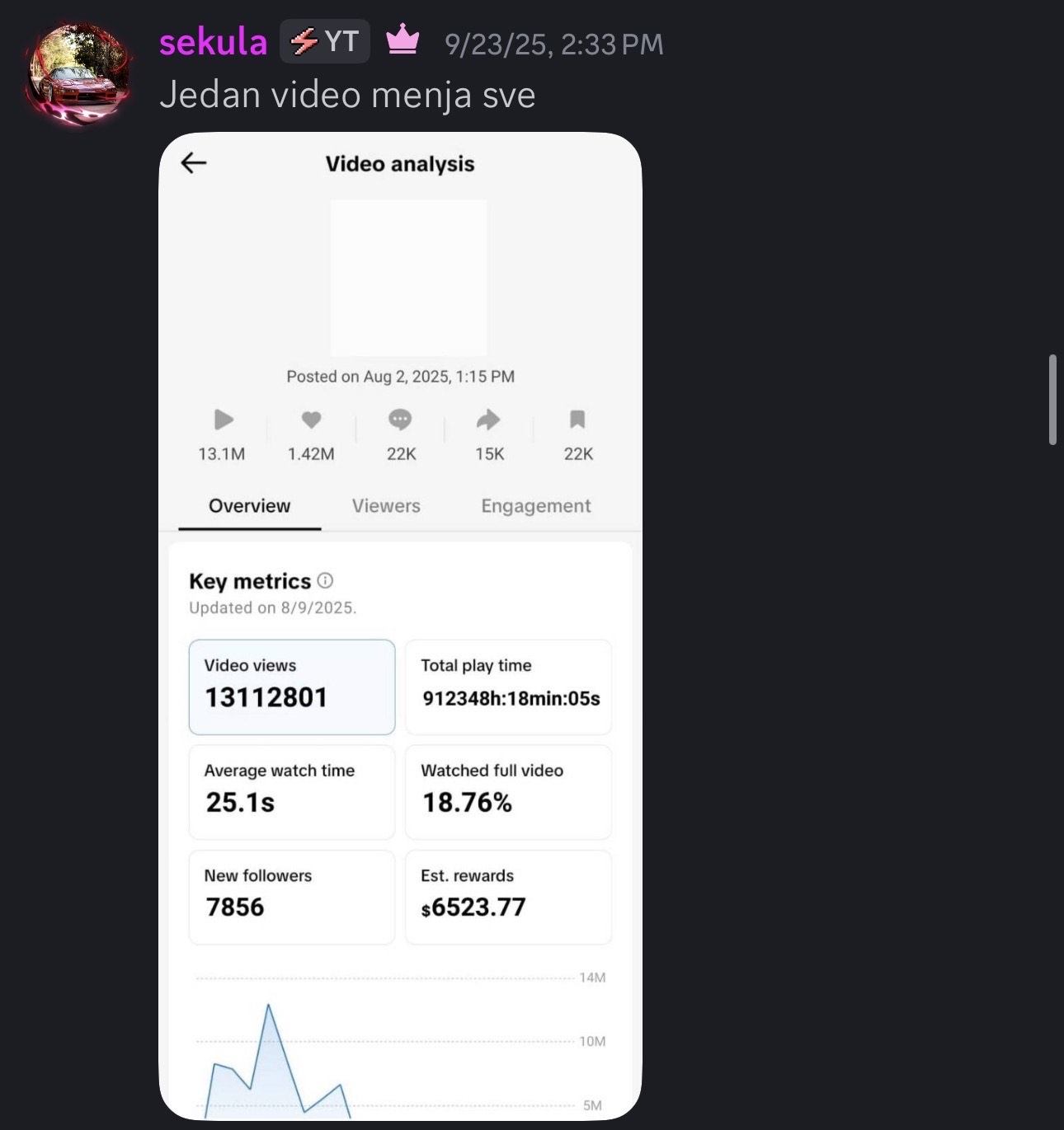 Nema brige — ne moraš ništa izmišljati sam. Dobijaš trend dropove, gotove skripte, kalendar objava i predložene teme koje su već dokazano viralne. Sve što trebaš uraditi jeste pratiti korake i prilagoditi sadržaj svojoj niši. Sistem je napravljen tako da nikada ne zapneš — svake sedmice dobijaš nove ideje, trendove i primjere koji ti pomažu da stalno ostaneš aktuelan i kreativan, bez stresa i blokade.